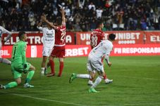 Dinamoviștii aruncă o minge în careul oaspeților, Pap iese aiurea și boxează greșit, iar Selmani înscrie cu un lob de la aproximativ 20 de metri.