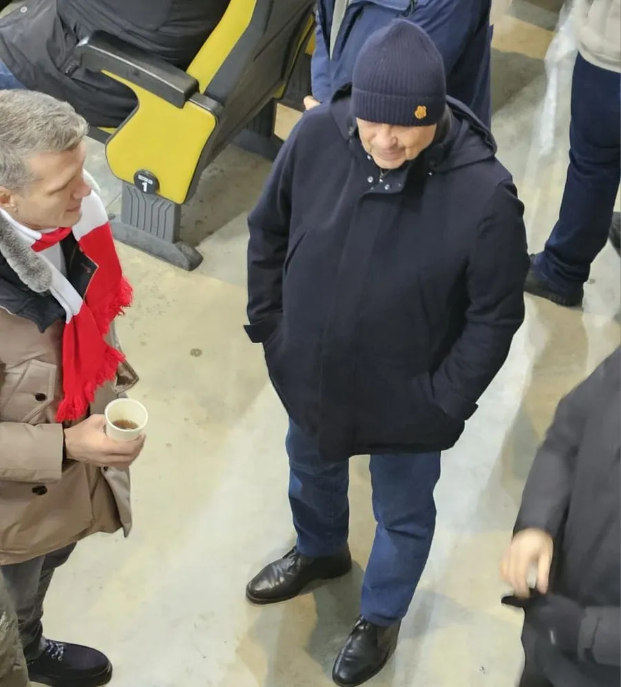 Mircea Lucescu urmărește partida stând în picioare, alături de acționarii de la Dinamo. Să fie vreun semn?