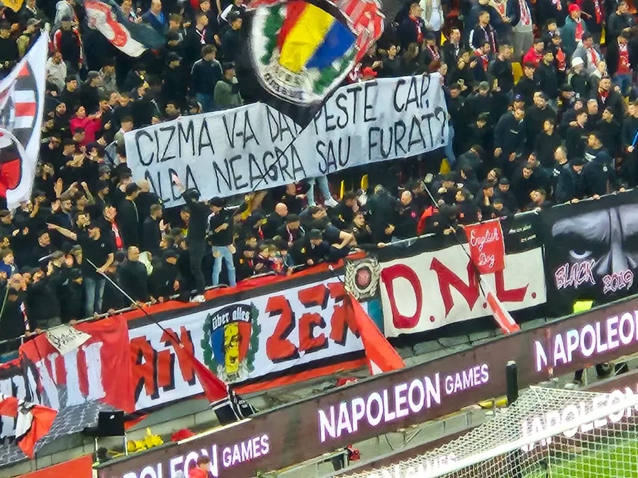 Minusuri: vulgaritatea unor mesaje care nu pot fi reproduse și nu își au locul în peisajul ultra în 2025, lipsa scenografiei și momentul de reculegere care nu a fost respectat în memoria lui Cătălin Hîldan, Flavius Domide și victimele exploziei din cartierul Rahova, atunci când peluza a cântat imnul Rapidului.