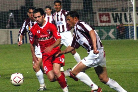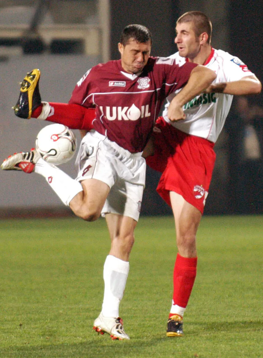 Daniel Niculae, într-un duel mai jos cu Angelo Alistar, a fost parte a ofensivei vișinii care a dus victoria în balanță pentru anul 2004 la capitolul derby cu Dinamo: