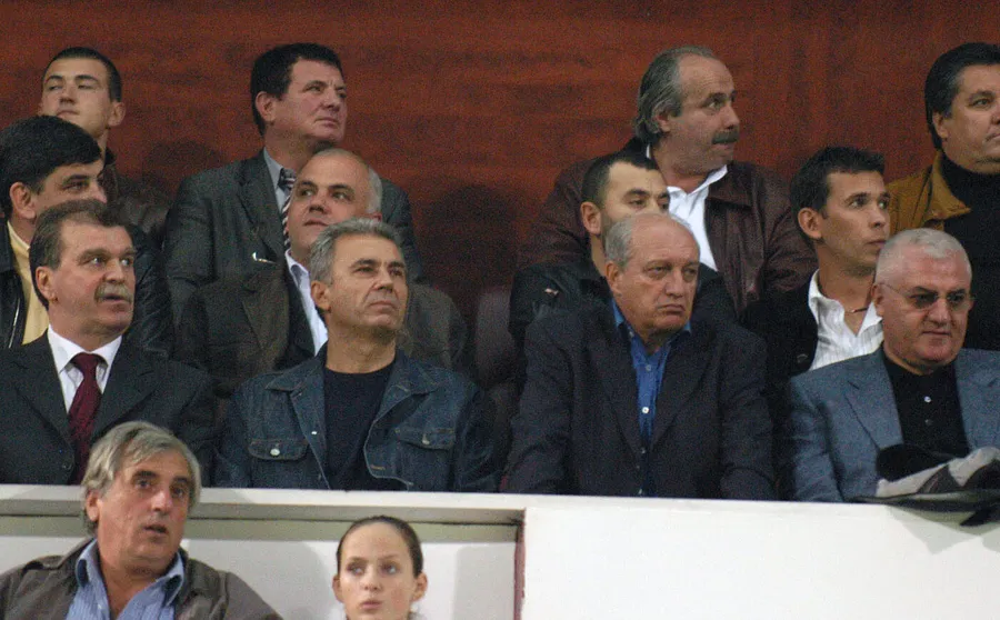 Aproape de ei, alte personaje cunoscute din fotbalul nostru, surprinse acum 20 de ani. Îi putem recunoaște pe Dinu Gheorghe, pe fostul arbitru Dan Petrescu „Fibră”, dispărut în 2020, și pe Dumitru Dragomir: