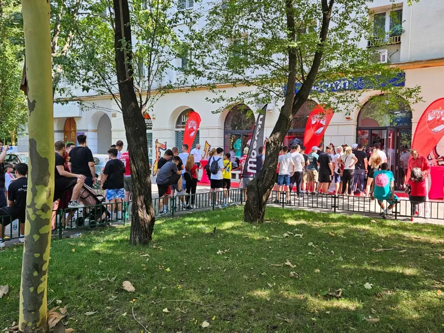 UPDATE 16:20: O coadă imensă s-a format în fața magazinului Macron din București, de pe Bd. Basarabia, unde zeci de suporteri dinamoviști așteaptă să-și poată achiziționa noile tricouri ale echipei lor de suflet.