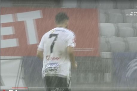 O ploaie torențială a oprit temporar meciul dintre U Cluj și Poli Iași în debutul reprizei secunde. Partida se dispută în cadrul etapei a 8-a din Superliga.