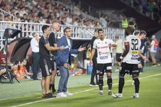 „Nu trebuie să ne mulțumească acest punct. După tot ce s-a întâmplat pe teren, nu are cum să ne mulțumească. Chiar dacă am întâlnit o echipă bună, cu jucători valoroși, cred că în această seară, cred că am făcut o repriză aproape perfectă. I-am ținut pe adversari în pressing, i-am sufocat în terenul lor. Cred că am mai marcat un gol, dar VAR-ul… Cred că pentru noi putea fi validat acel gol. Dacă așa au hotărât cei din camera VAR, nu mai putem să schimbăm. Nu vreau să devin plictisitor (n.r. cu declarațiile după meciuri despre arbitraj). Vreau să îmi văd de echipa mea, de munca pe care trebuie să o facem împreună și să arătăm așa cum am arătat în prima repriză. Nu le-am dat absolut nicio șansă, dar ne-au dat un gol cu o execuție formidabilă.
