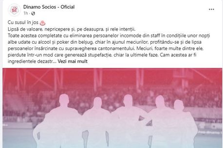 Fanii din gruparea „Dinamo-Socios”, cei care au cumpărat în 2023 acțiunile lui Cornel Dinu de la Dinamo, au realizat în cursul zilei de miercuri, 5 iunie 2024, o postare pe rețelele de socializare în care fac dezvăluiri incredibile din interiorul echipei antrenate de Zeljko Kopic.