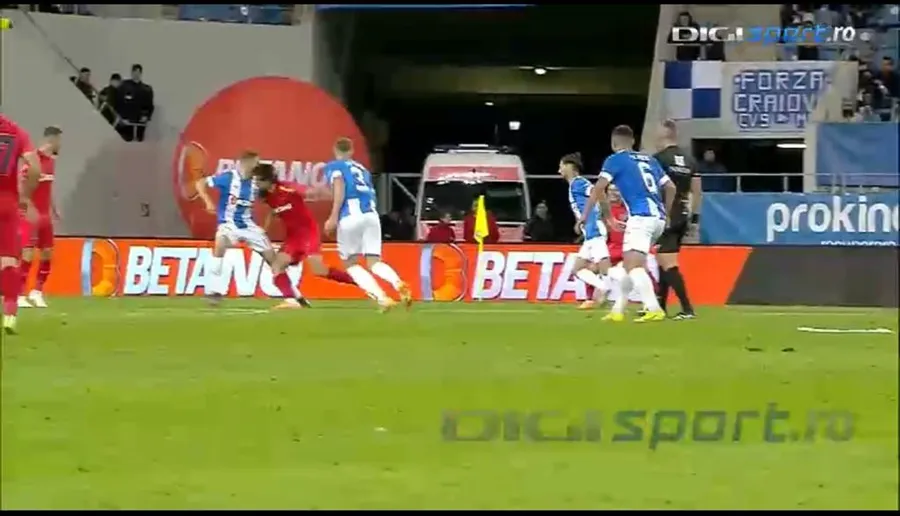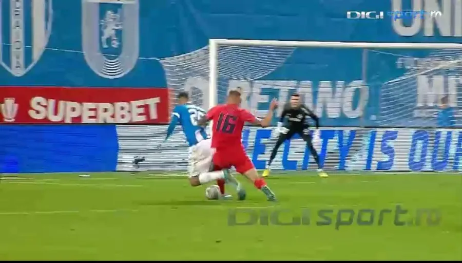 Polemicile au început din minutul 16 când Jovan Markovic, jucătorul celor de la Craiova, scapă în suprafață de pedeapsă a celor de la FCSB, unde este oprit de către Haruț printr-un atac prin alunecare din lateral.