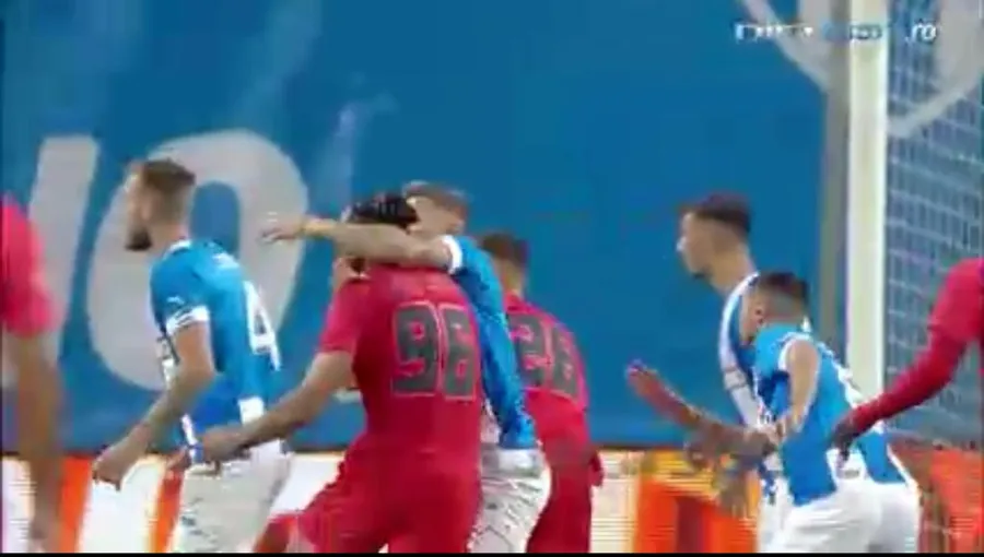 Faza cea mai controversată este cea petrecută în minutul 47. În suprafața de pedeapsă a celor de la Craiova, Andrea Compagno se ciocnește de Bancu iar arbitrul Radu Petrescu acordă lovitură de la 11 metri.