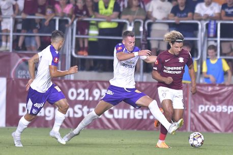 Min. 44: Onea pătrunde în forță și centrează, dar mingea nu găsește niciun rapidist în careu