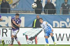 Min. 17: Centrarea excelentă a lui Bancu îl găsește pe Matei în fața porții, într-o poziție excelentă, dar acesta pune latul greșit și trimite pe lângă Poartă!