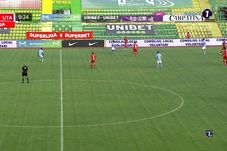Min. 5: Mingea îl lovește pe arbitrul Cătălin Popa, care își recunoaște greșeala