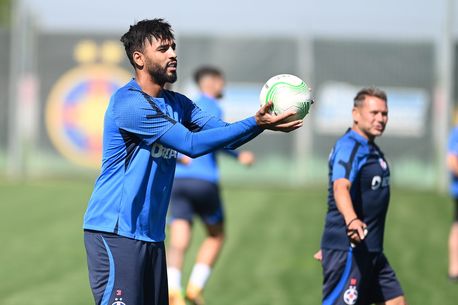 Billel Omrani încă nu este apt de joc pentru FCSB. Nicolae Dică speră să-l aibă la dispoziție după ce va slăbi câteva kilograme. Sursă foto: captură ProSport