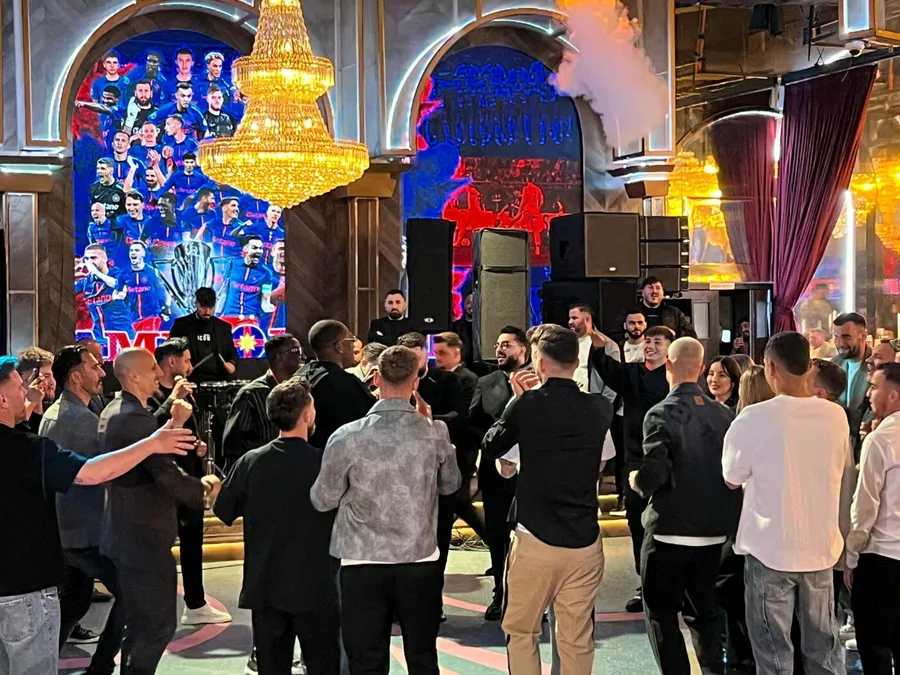 Imagini spectaculoase de la petrecerea FCSB dintr-un club de fițe din București! Manele, delicatese culinare și băuturi fine pentru campionii României. Foto&Video