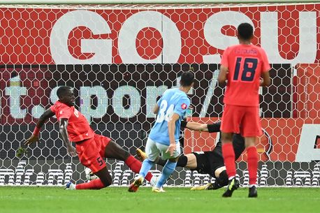 Roș-albaștrii au deschis scorul prin David Miculescu, în minutul 82. La ultima fază a partidei, Radunovic a alunecat în careu și l-a faultat pe Adam Nemec.