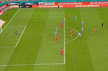 5 minute mai târziu, Darius Olaru a ieșit din nou în evidență. Mijlocașul central al celor de la FCSB a primit perfect o minge în centru, a avansat până aproape de careu și a șutat excelent. Balonul trimis de Olaru nu a putut fi respins de către Florin Iacob, iar FCSB a intrat în avantaj.