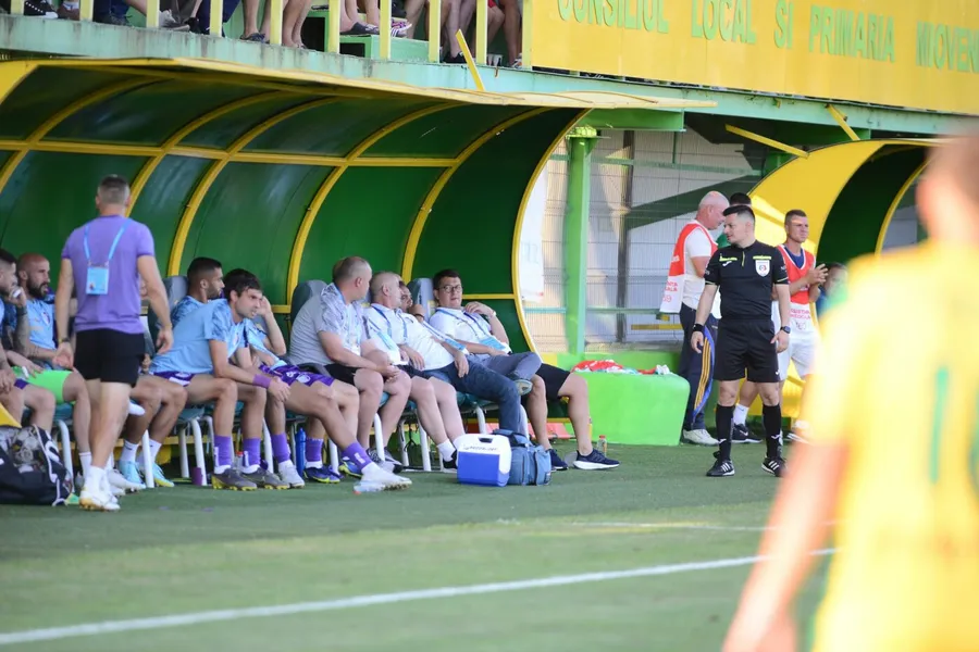 Meciul din cadrul etapei cu numărul 6 din Superliga României a început la ora 18:00. În acel moment, în Pitești erau nu mai puțin de 32 de grade, lucru care l-a făcut pe Prepeliță să aibă o ținută mult mai lejeră.