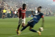 În minutul 13, fundașul central nigerian în vârstă de 27 de ani, care a purtat chiar banderola de căpitan la echipa moldoveană în acest meci, a fost păcălit destul de ușor de o preluare făcută în viteză de Funsho Bamgboye și i-a pus practic o piedică acestuia chiar în marginea careului de 16 metri, deși fotbalistul Rapidului nu avea foarte multe soluții de a continua faza, aflându-se într-un unghi destul de închis. În plus, Pius fusese deja dublat în acea fază de către Alin Șeroni. (AICI VIDEO)