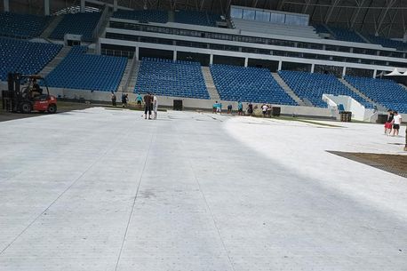 Suprafaţa de joc de pe arena „Ion Oblemenco” a fost afectată iremediabil în timpul festivalului de muzică „Intencity”, care a avut loc în week-end-ul trecut, după cum se poate observa în imaginile publicate de Oltenia TV, în timpul procesului de îndepărtare a covorului montat special pentru evenimentul respectiv. Gazonul afectat va fi îndepărtat în cel mai scump timp, iar de săptămâna viitoare va începe procedura de instalare a unei noi suprafeţe de joc. Sunt şanse ca derby-ul dintre Universitatea Craiova şi FCSB, programat pe 18 septembrie, să fie primul meci pe noul teren amplasat la arena „Ion Oblemenco”. Până atunci, Universitatea Craiova şi FCU îşi vor disputa partidele de pe teren propriu la Severin, respectiv la Târgu Jiu.