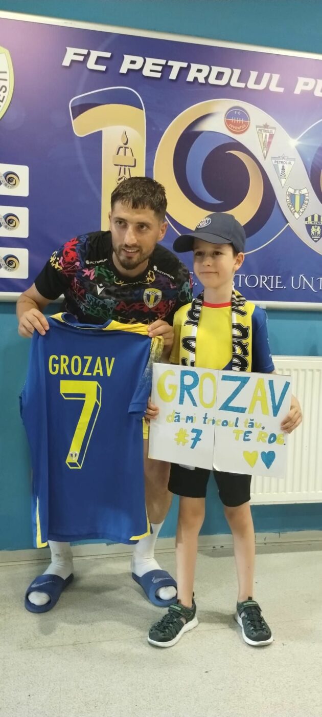 Puștiul venise de la București, împreună cu tatăl său, și este mare fan Grozav. Gicu a stat de vorbă cu el, l-a încurajat să facă sport, dar și să se țină de școală. La final s-au pozat și îmbrățișat.