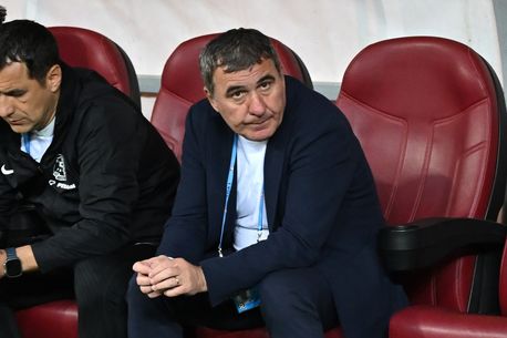 Gheorghe Hagi reactioneaza în meciul de fotbal dintre Universitatea Craiova si Farul Constanta, contând pentru Play off-ul Superligii Superbet, desfășurat pe Stadionul Ion Oblemenco din C