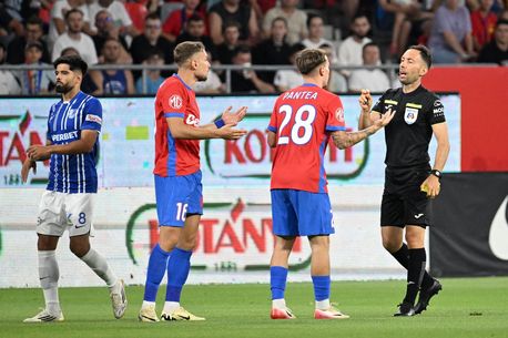 „Târnovanu și Găman, atât spun. Nu știu ce a spus. Nu avea voie să ia roșu, probabil a spus ceva. Și Găman, care la un metru de Cisotti nu vede fault. Să vedem și 11 metri care este. Putea să fie invers contactul.