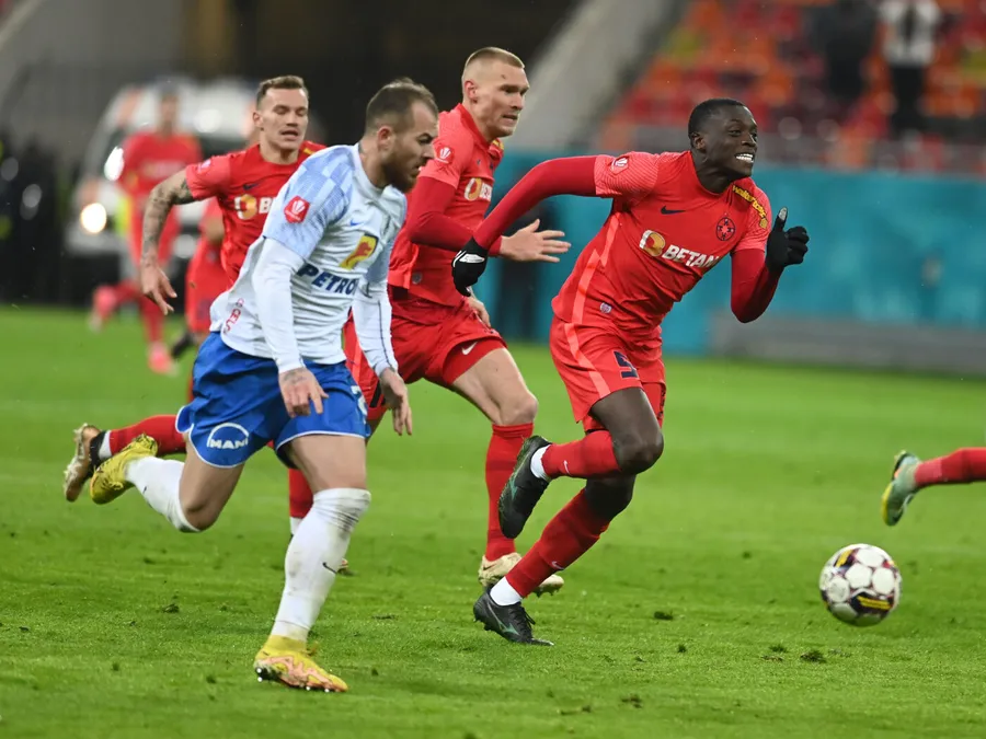 Denis Alibec, Joonas Tamm si Joyskim Aurelien Dawa Tchakonte in meciul de fotbal dintre FCSB si Farul Constanta, contand pentru Superliga Superbet, desfasurat pe Arena Nationala din Bucuresti, duminica 29 ianuarie 2023. © FOTO:Razvan Pasarica/SPORT PICTURES