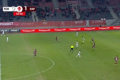 Fotbalistul în vârstă de 23 de ani a profitat de faptul că portarul sibienilor era la câțiva metri de linia porții și a marcat cu un șut de la aproximativ 40 de metri.