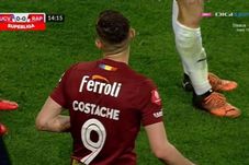 Rapid București a rămas în inferioritate numerică după doar un sfert de oră de joc în meciul cu Universitatea Craiova, după un fault dur comis de către giuleșteni.