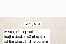 „Mister, vă rog mult să nu luați o decizie să plecați, o să fim bine când ne punem la punct și o să facem iar lucruri mari!”.