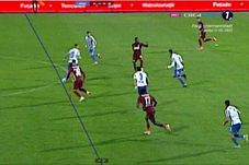 La ultimul meci cu probleme, CFR Cluj a avut un gol anulat în minutul 69 al partidei de la Iași, dar felul în care s-au tras liniile la poziția lui Bîrligea lasă loc de interpretări. După reluările prezentate, linia apărătorului pare că taie gheata acestuia și nu este poziționată în extremitatea cea mai apropiată de poartă a corpului său, adică cea a călcâiului, în această situația. Nici linia roșie, a atacantului, nu convinge. Pare mai degrabă că trece prin cotul acestuia, nu în dreptul umărului, așa cum cere regulamentul (Foto, captură TV Digi Sport).