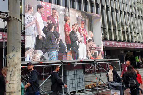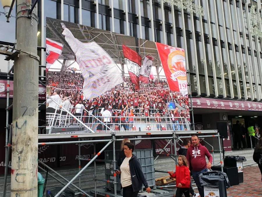Cu toate acestea, destul de mulți fani ai Rapidului s-au prezentat în jurul arenei din Giulești, acolo unde au fost amenajate câteva terase pentru ei. Astfel, au putut să se bucure de spectacolul oferit de organizatori, care au reușit să „aconteze” mai multe momente artistice pentru acest eveniment istoric.