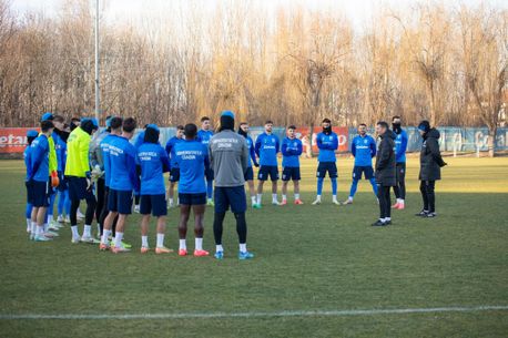 Temperaturile în Bănie sunt mai ridicate faţă de mediile obişnuite pentru această perioadă, aşa că antrenamentele decurg fără probleme în cadrul bazei de pregătire „Ilie Balaci”, unde alb-albaştrii au parte de toate condiţiile de antrenament, masă, recuperare.