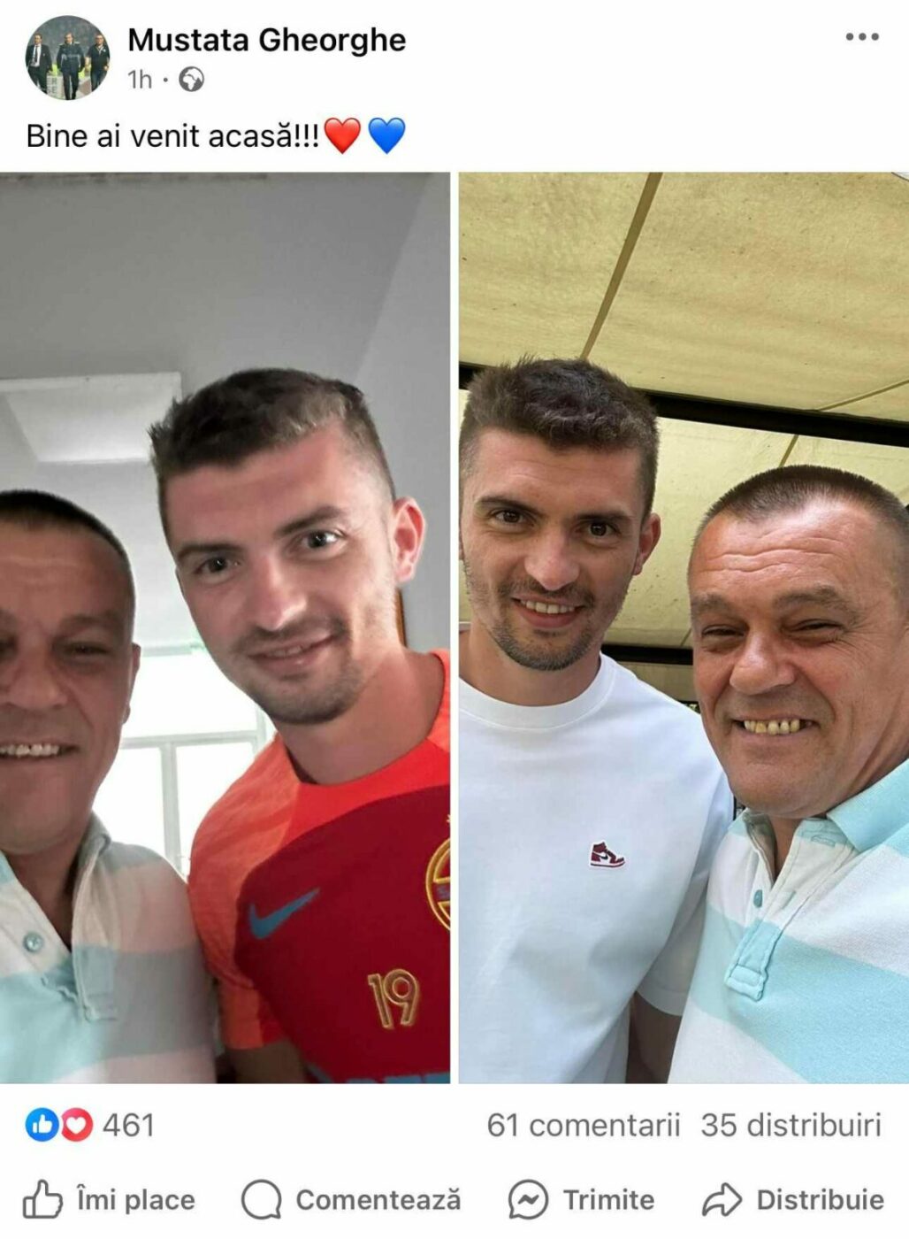 Bun venit acasă!!!”, a scris Gheorghe Mustață, lângă două inimi în culorile clubului.