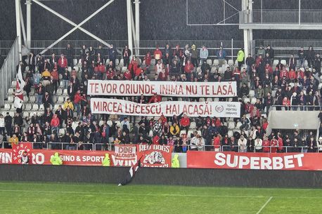 În timpul partidei, fanii formației din Ștefan cel Mare au afișat un mesaj special pentru Mircea Lucescu.