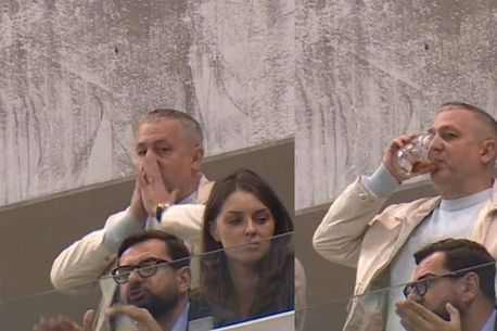 Prezent pe Arena Națională, Mihai Rotaru, patronul Universității Craiova, nu a mai putut face față presiunii și a început să bea dintr-un pahar cu whisky, supărat că jucătorii săi nu reușesc să se impună.