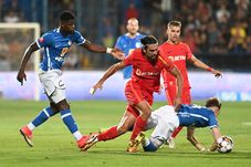 În minutul 3 al meciului dintre Chindia Târgoviște și FCSB, scor 0-2, Darius Olaru și Andrea Compagno s-au ciocnit cap în cap și au rămas cu semne.