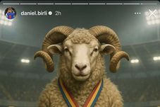 Atacantul „roș-albaștrilor” a postat pe Instagram o imagine generată cu ajutorul AI care ilustrează un berbec cu medalia la gât, având doi câini în lesă și trei ciori, aluzie la rivalii de la Dinamo și de la Rapid.