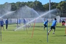 FCSB se află în cantomentul din Antalya de zece zile, iar miercuri, 14 ianuarie, jucătorii lui Gigi Becali au avut parte de un moment comic, după ce aspersoarele au pornit chiar în timpul antrenamentului și i-au udat. Totul a durat numai câteva secunde, timp în care cei aflați pe marginea terenului au strigat spre responsabilii locului de antrenament să oprească apa.