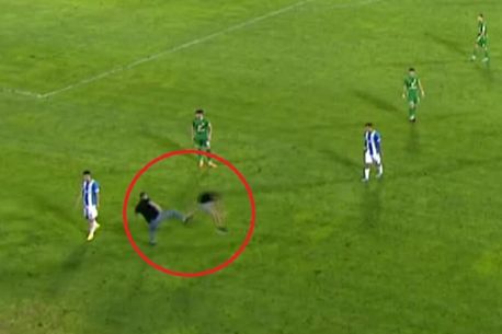 Cei doi suporteri care au pătruns pe suprafața de joc de la Severin s-au luat la bătaie chiar sub privirile jucătorilor celor două formații. Forțele de ordine au intervenit rapid pentru ca lucrurile să nu degenereze și mai tare și i-au scos pe cei doi bărbați de pe teren. (VIDEO)