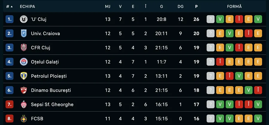 Situația s-ar putea schimba totuși chiar și din această seară, în cazul în care FCSB se va impune în Marele Derby. Campioana ar ajunge la 19 puncte și ar trece pe loc de play-off, peste Dinamo, chiar și cu un meci mai puțin disputat!