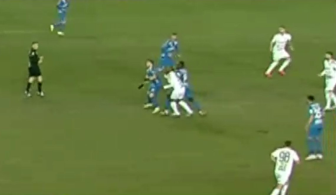 (Faza la care Istvan Kovacs ar fi putut dicta fault, dar pe care nu a văzut-o pe monitorul VAR deoarece nu i-a fost prezentată. Foto: captură Digi Sport)