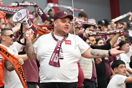 Liderul galeriei rapidiste Liviu Ungurean, alias Bocciu, canta alaturi de galerie dupa meciul de fotbal dintre Rapid Bucuresti si CFR Cluj, din cadrul Superligii Superbet, desfasurat pe Superbet Arena-Giulesti din Bucuresti, luni 25 septembrie 2023.,Image: 810185621, License: Rights-managed, Restrictions: , Model Release: no