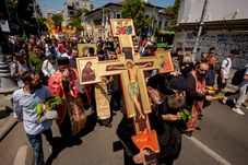 A doua zi, Gigi Becali, patronul de la FCSB, a păstrat obiceiul din ultimii ani și s-a dus pe Calea Victoriei pentru a sfinți impozantul bulevard. Pe parcursul procesiunii, el a fost înconjurat de preoți și civili.