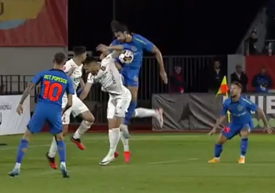 Andrea Compagno s-a debarasat de fundașii lui Marius Măldărășanu și a deschis scorul la Sibiu, în minutul 8, în Hermannstadt – FCSB. Numai că, chiar când se bucura, arbitrul Viorel Flueran l-a întrerupt și l-a anunțat că reușita este anulată din cauza faultului în atac asupra lui Velerică Găman (34 ani).