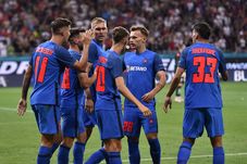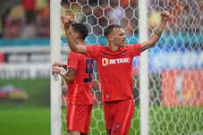 Bucurie a fotbalistilor stelisti dupa un gol marcat cu David Raul Miculescu, Joonas Tamm si Grigoras Alexandru Pantea in meciul de fotbal dintre FCSB si FK Viking Stavanger, din cadrul play-off-ului UEFA Europa Conference League, desfasurat pe Arena Nationala din Bucuresti, joi 18 august 2022. © FOTO:Razvan Pasarica/SPORT PICTURES