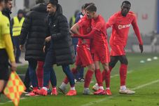 Imediat după ce a marcat, Octavian Popescu a mers în dreptul băncii de rezerve și l-a îmbrățișat pe Mihai Pintilii, antrenorul interimar al lui FCSB, care pare că îi oferă mai multe șanse tânărului fotbalist.