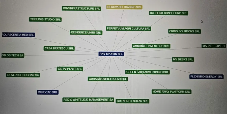 Conform Listafirme.ro, RNV Sport SRL este administrată de Denisa Marina Ioana și îi are beneficiari direcți pe Lucian Bădescu, respectiv Silviu Bogdan Mihalcea Călinescu, aceiași care apar și în cazul Renovatio Trading. Lucian Bădescu este și beneficiar în cadrul Renovatio Asset Management, în timp ce Terranet Holding, care este deținută de Offnet (cu reprezentant Aurel Arion) reprezintă administratorul societății care urmează să fie preluată de OMV Petrom, Renovatio Asset Management.