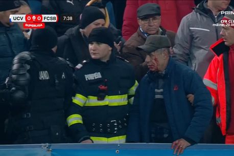 Apoi, pe transmisiunile televiziunilor care au furnizat partida a putut fi observată o secvență în care fanul respectiv a apărut în timp ce se deplasa spre ambulanță, lovit undeva în zona feței și cu probleme în a-și menține echilibrul, ajutat în acest sens de un pompier și un paramedic dintre cei prezenți pe stadion.