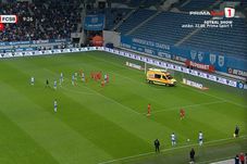 După circa două minute, ambulanța respectivă, după ce l-a preluat pe acel fan, a părăsit terenul, iar Marcel Bîrsan a fluierat reluarea jocului.