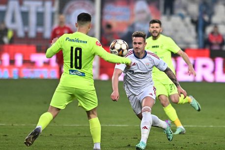 Min. 26: Oaspeții rămân în inferioritate numerică după eliminarea lui Stevanovici, în urma unui fault din postura de ultim apărător