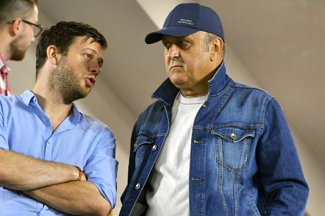 Dan Sucu discuta cu Daniel Niculae in tribuna la meciul de fotbal dintre Rapid Bucuresti si FCSB, contand pentru Superliga Superbet, desfasurat pe Stadionul Rapid Giulesti din Bucuresti, duminica 24 iulie 2022. © FOTO:Razvan Pasarica/SPORT PICTURES